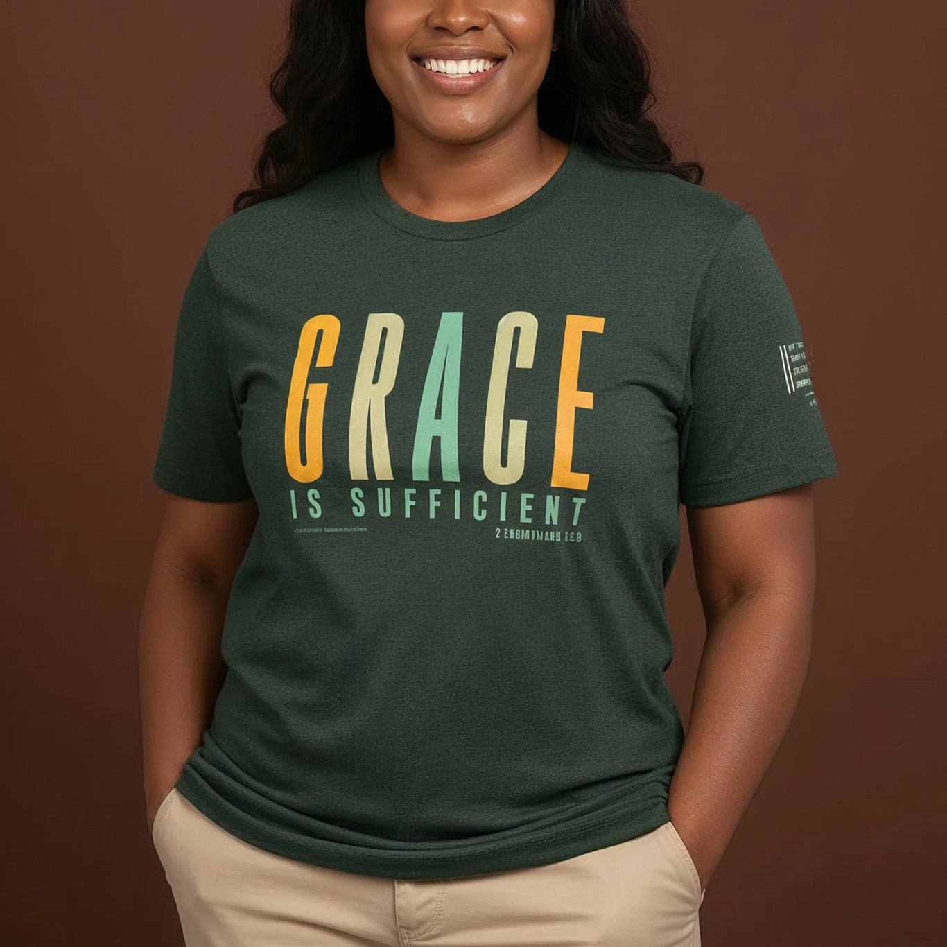 Grace is Sufficient Christian T-Shirt (Shades of Spring) Heather Forest Green